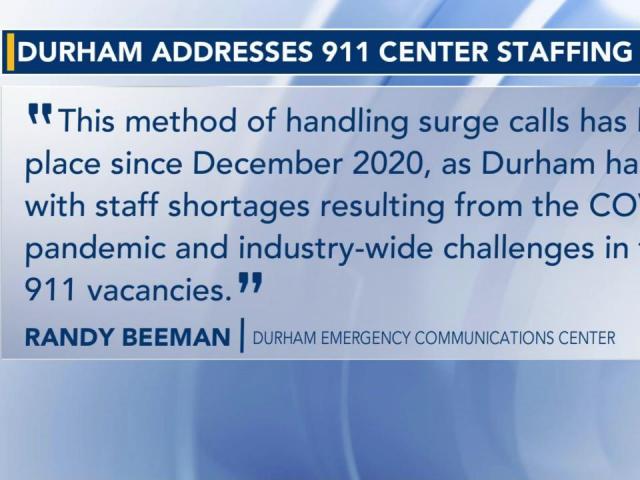 In a statement, the DECC said it continues to use alternate routing to the Raleigh-Wake Emergency Communications Center so that all 911 calls in Durham are answered in a timely fashion.